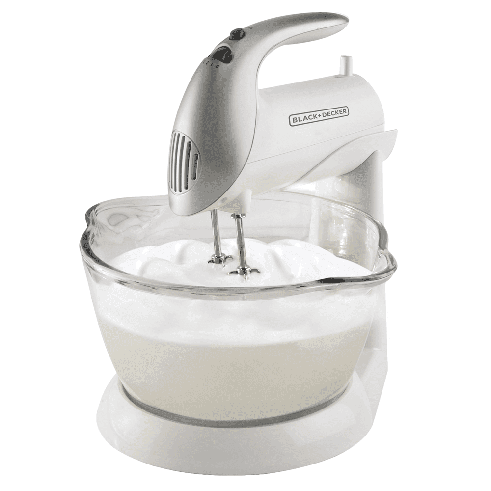 Batidora de pedestal Black+Decker con 5 velocidades, motor de 250W, soporte estable y recipientes versátiles para mezclar con comodidad y eficiencia.