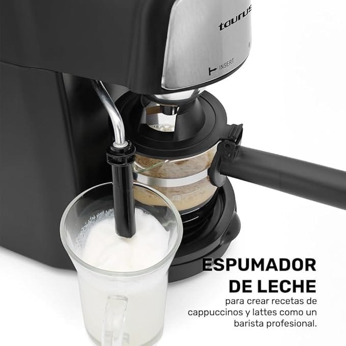 - ☕🏠CAFÉ ESTILO BARISTA EN CASA: Prepara deliciosos cappuccinos, lattes y más con la cafetera VIENA de Taurus, equipada con un espumador de leche para crear bebidas cremosas y profesionales.