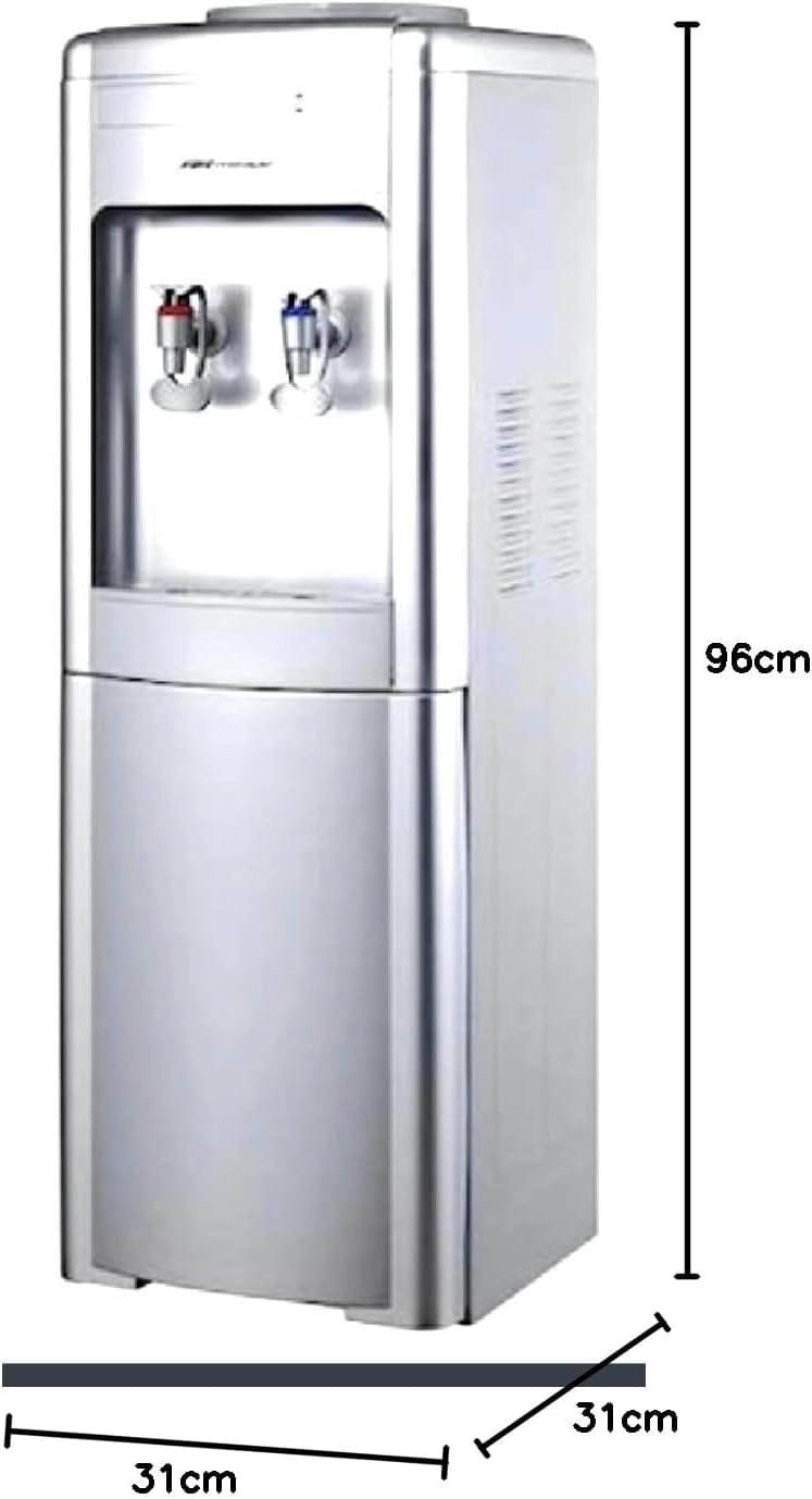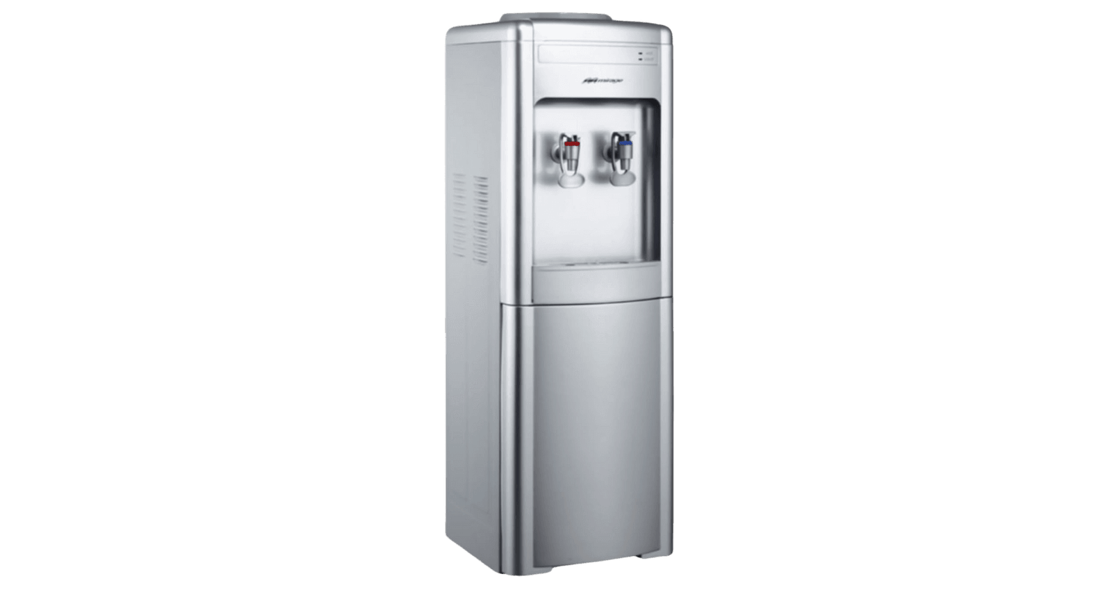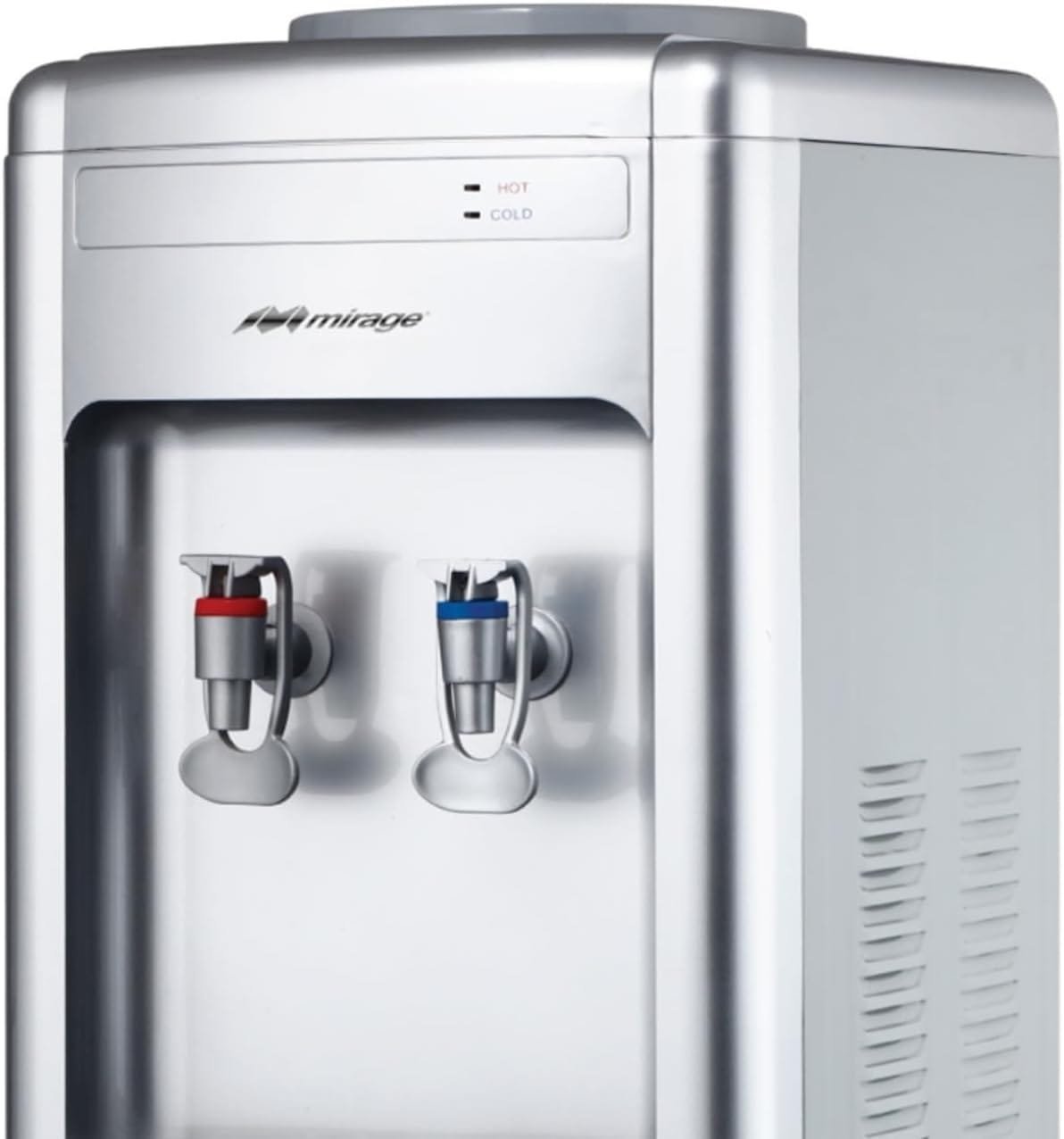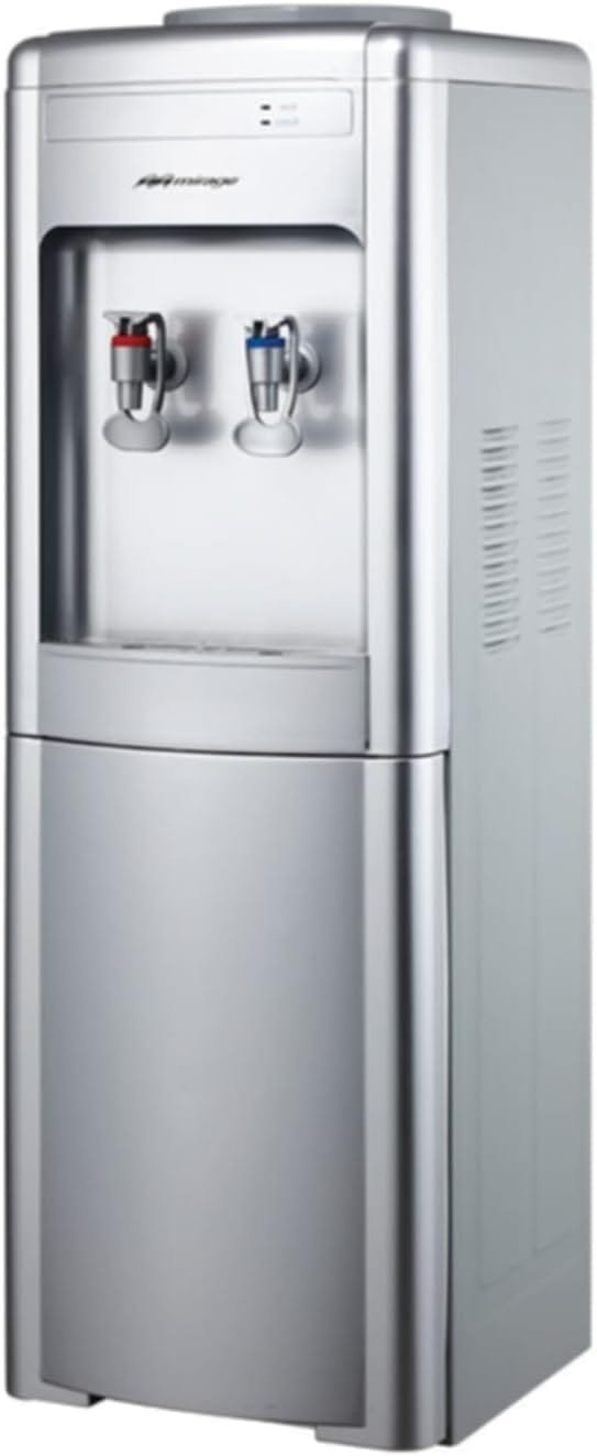 Despachador de agua MIRAGE con llaves para agua fría y caliente, diseño moderno y color plata, ideal para hogar u oficina.